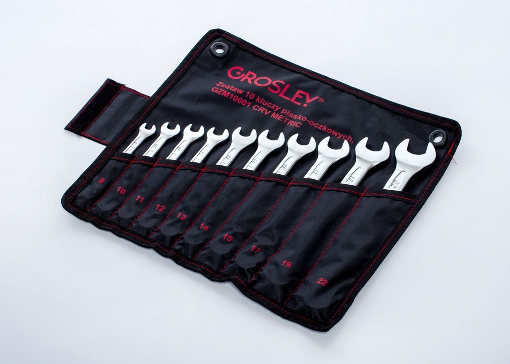 GROSLEY 10 részes csillag-villáskulcs készlet (8-22 mm, felgöngyölíthető táskával)